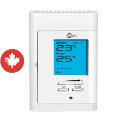 Le thermostat électrique non programmable fonctionne à partir d’un contrôleur à pulsation et analyse la température à toutes les 15 secondes, offrant ainsi une température ambiante stable et agréable. Si vous possédez une thermopompe, le thermostat peut être installé tant l’intérieur qu’à l’extérieur.