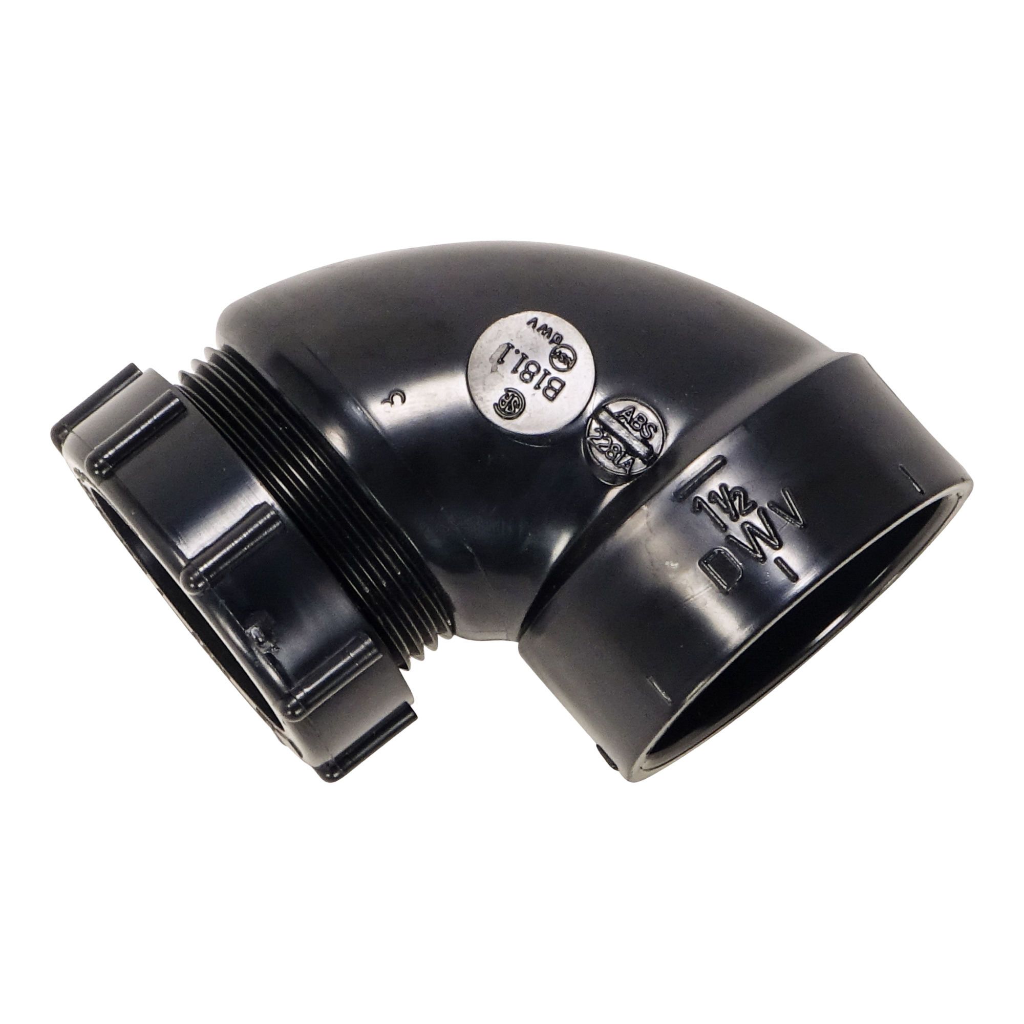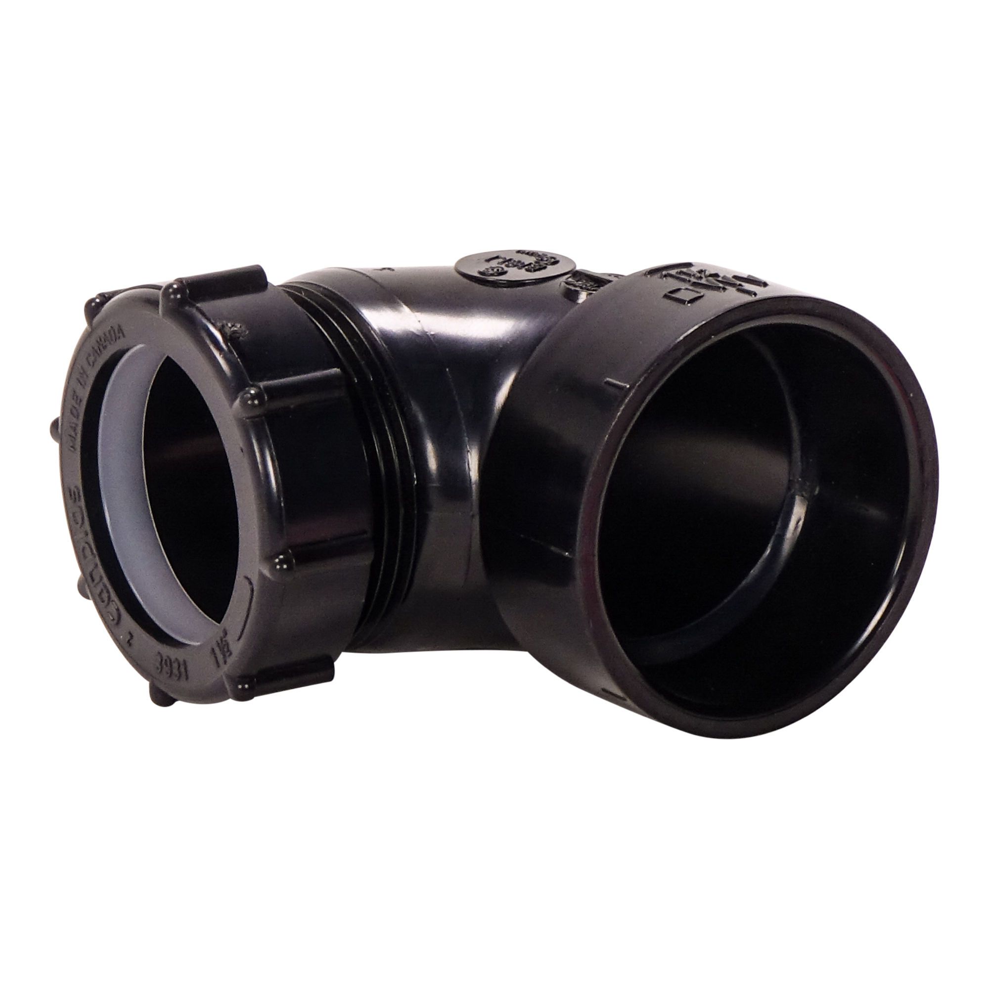 Coude 90˚ avec écrou ABS DWV, 1 1/2" x 1 1/2", écrou coulissant x fem., noir