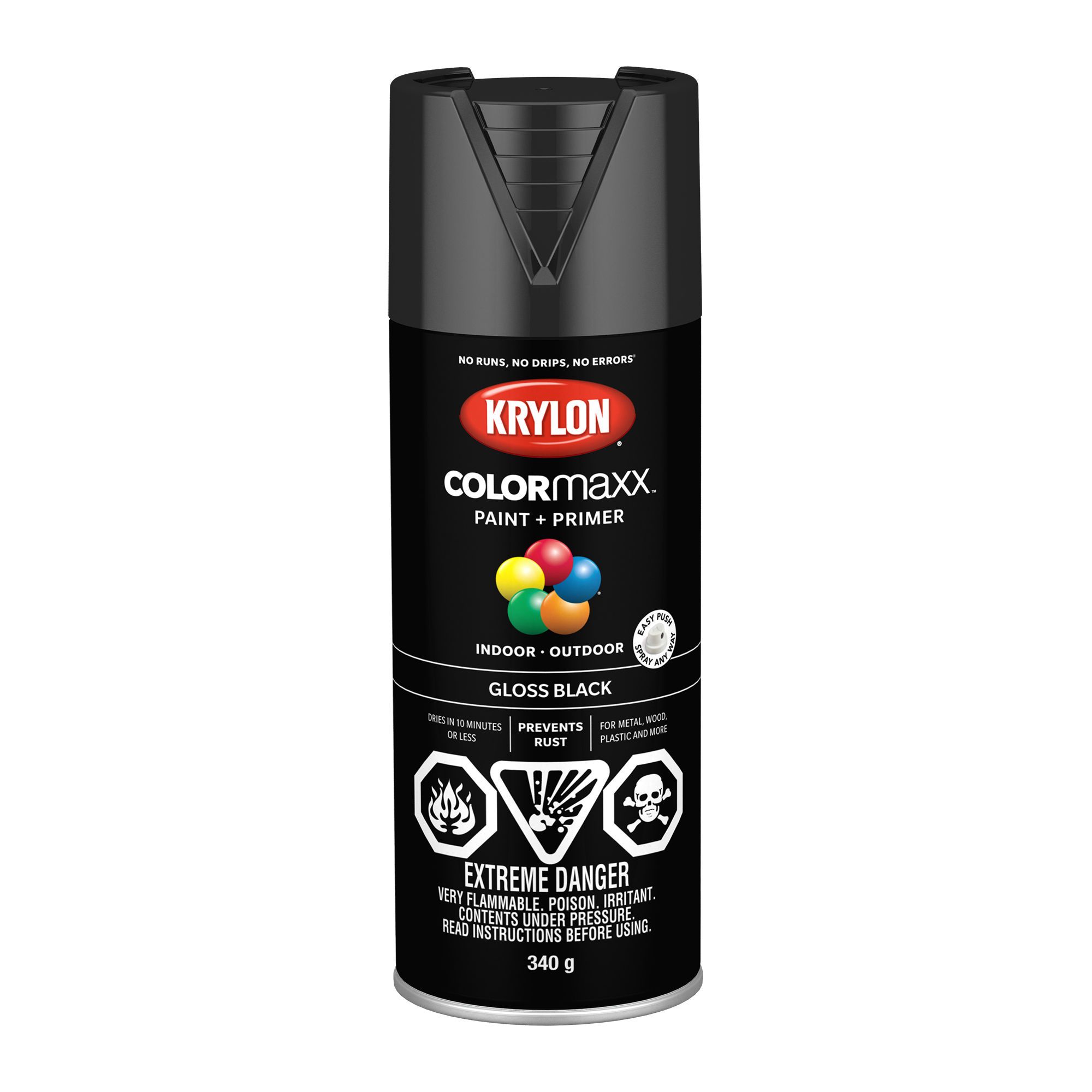 Le mélange de peinture et apprêt Krylon Colormaxx propose des couleurs vives et brillantes et convient à des surfaces en tous genres.