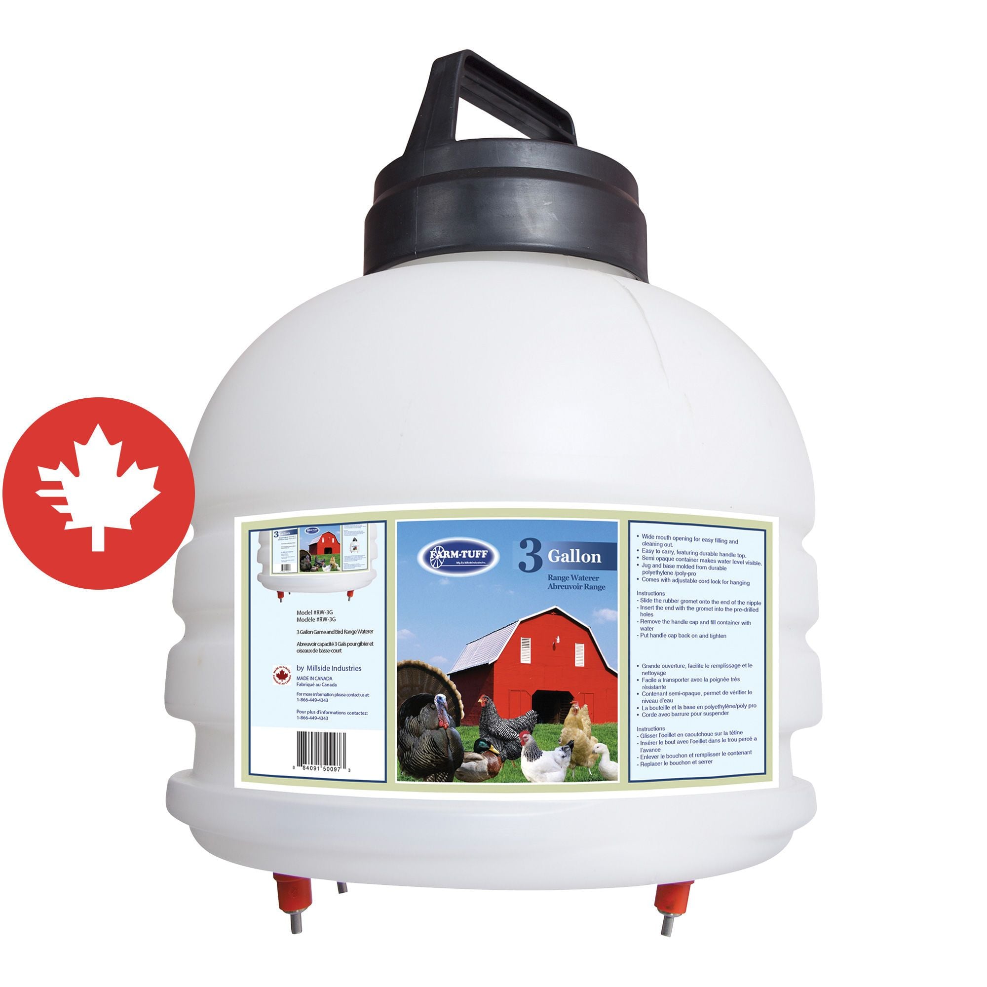 Cet abreuvoir pour volaille à quatre tétines possède une grande ouverture permettant un remplissage et un nettoyage plus rapide et simple.