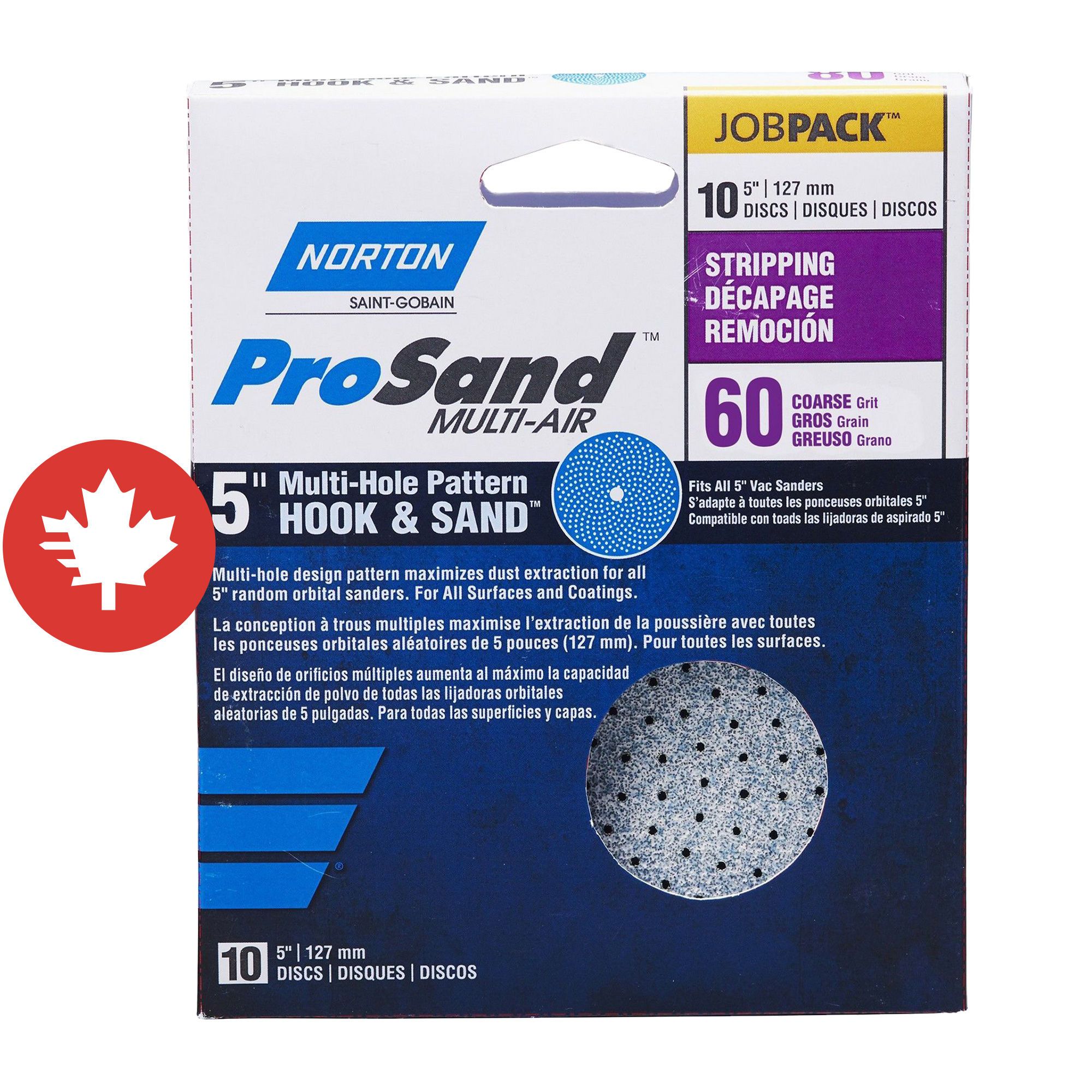 Disques abrasifs Norton ProSand "Multi-Air Cyclonic, 5'", Grain 60, 10/pqt
