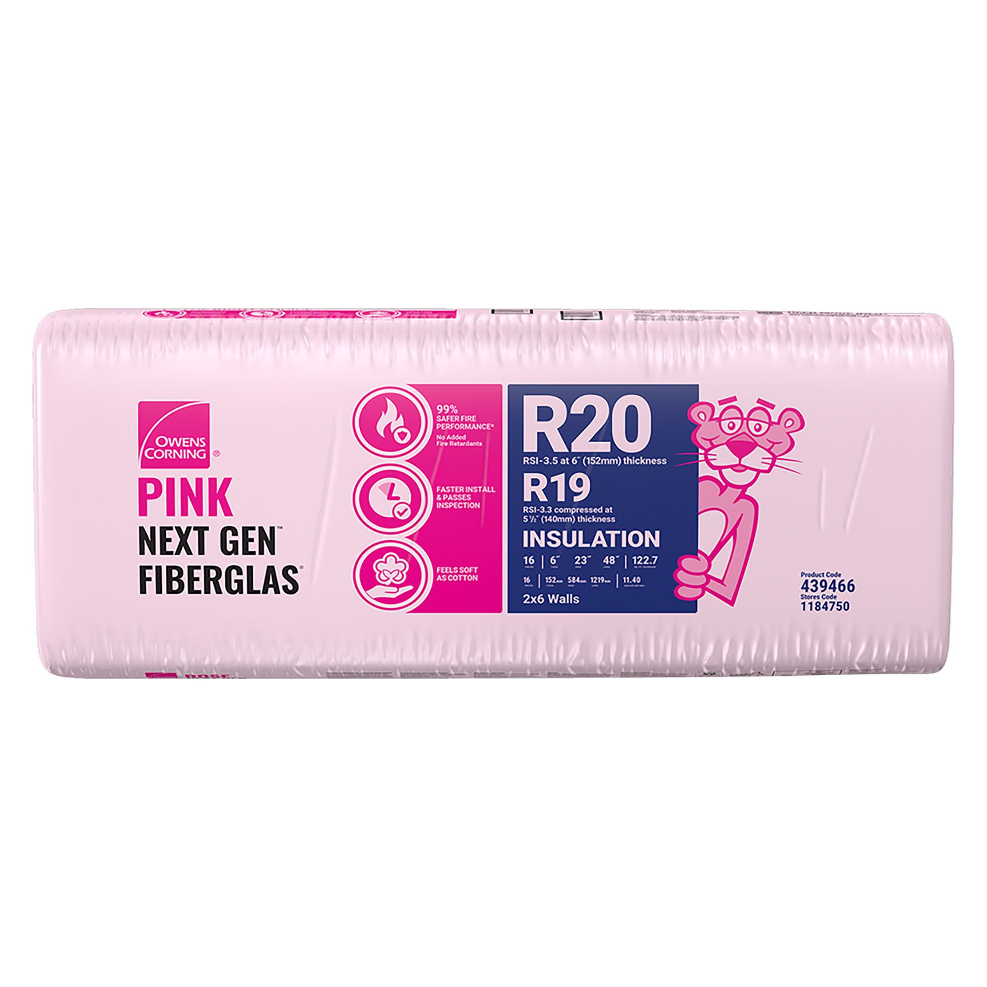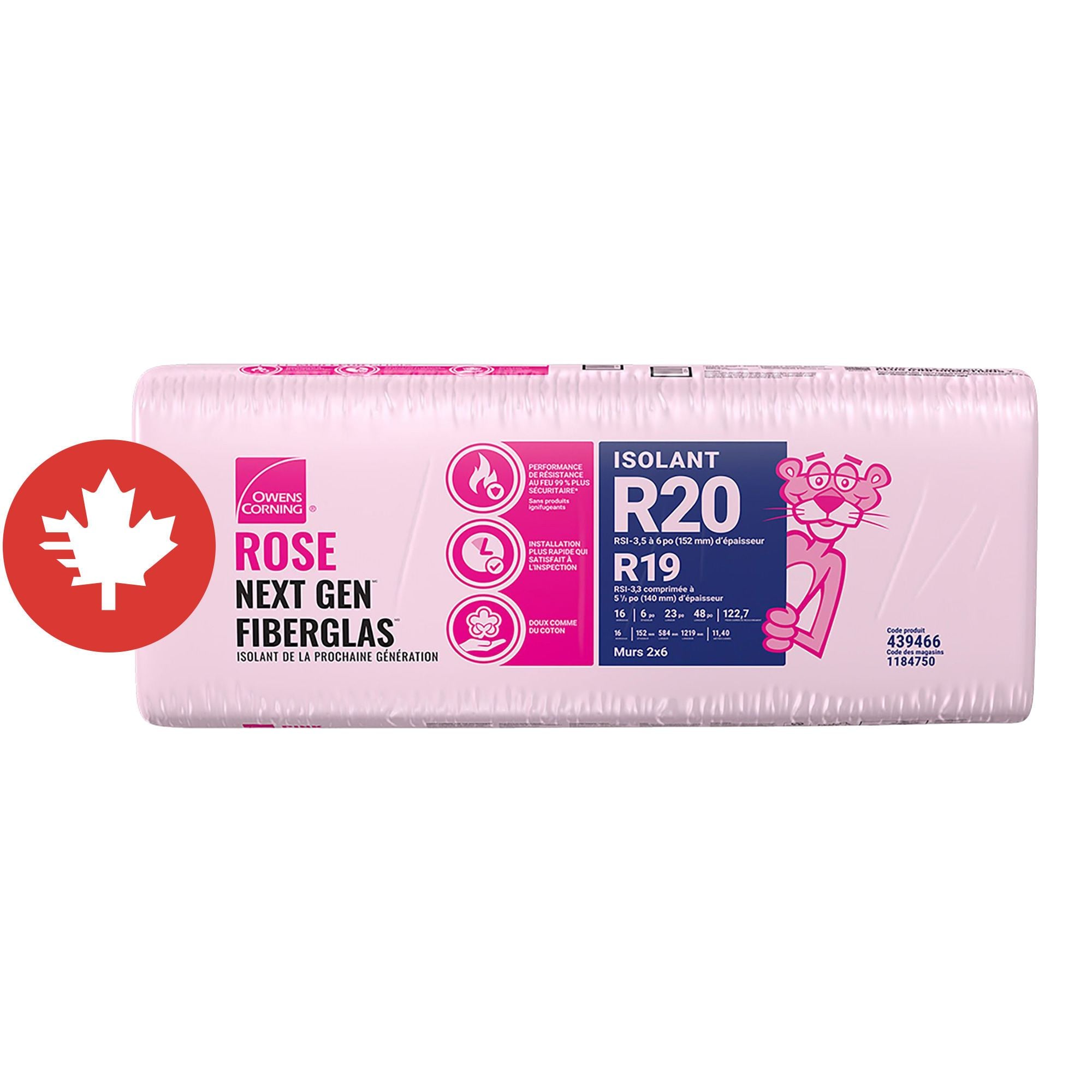 Laine isolante Rose Next Gen Fiberglas, R-20, 23" x 48" x 6", couvre 122,7 pi²