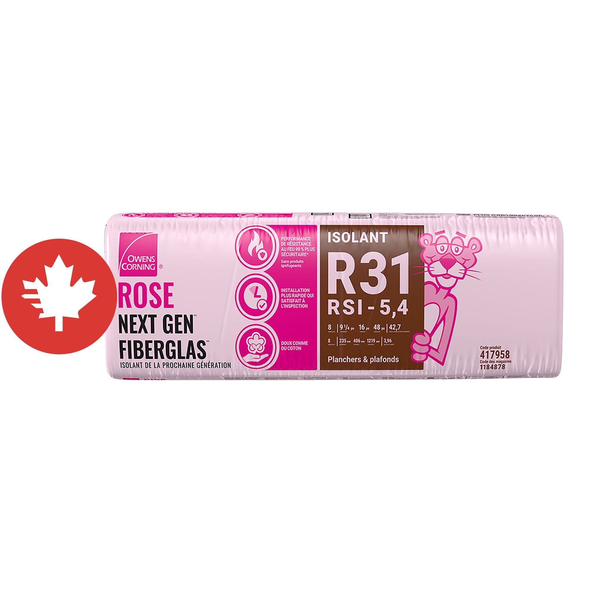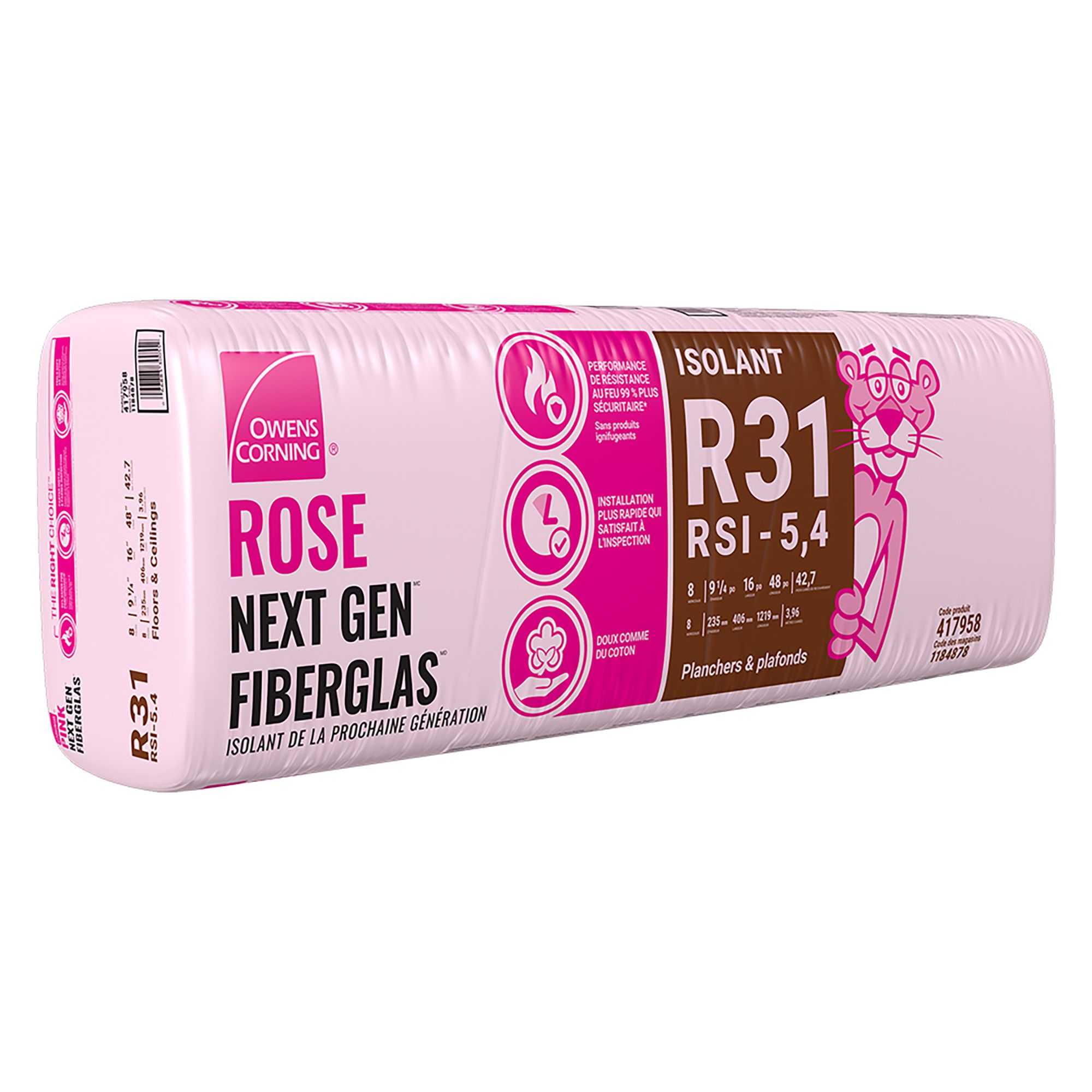 Laine isolante Rose Next Gen Fiberglas, R-31, 16" x 48" x 9 1/4", couvre 42,7 pi²