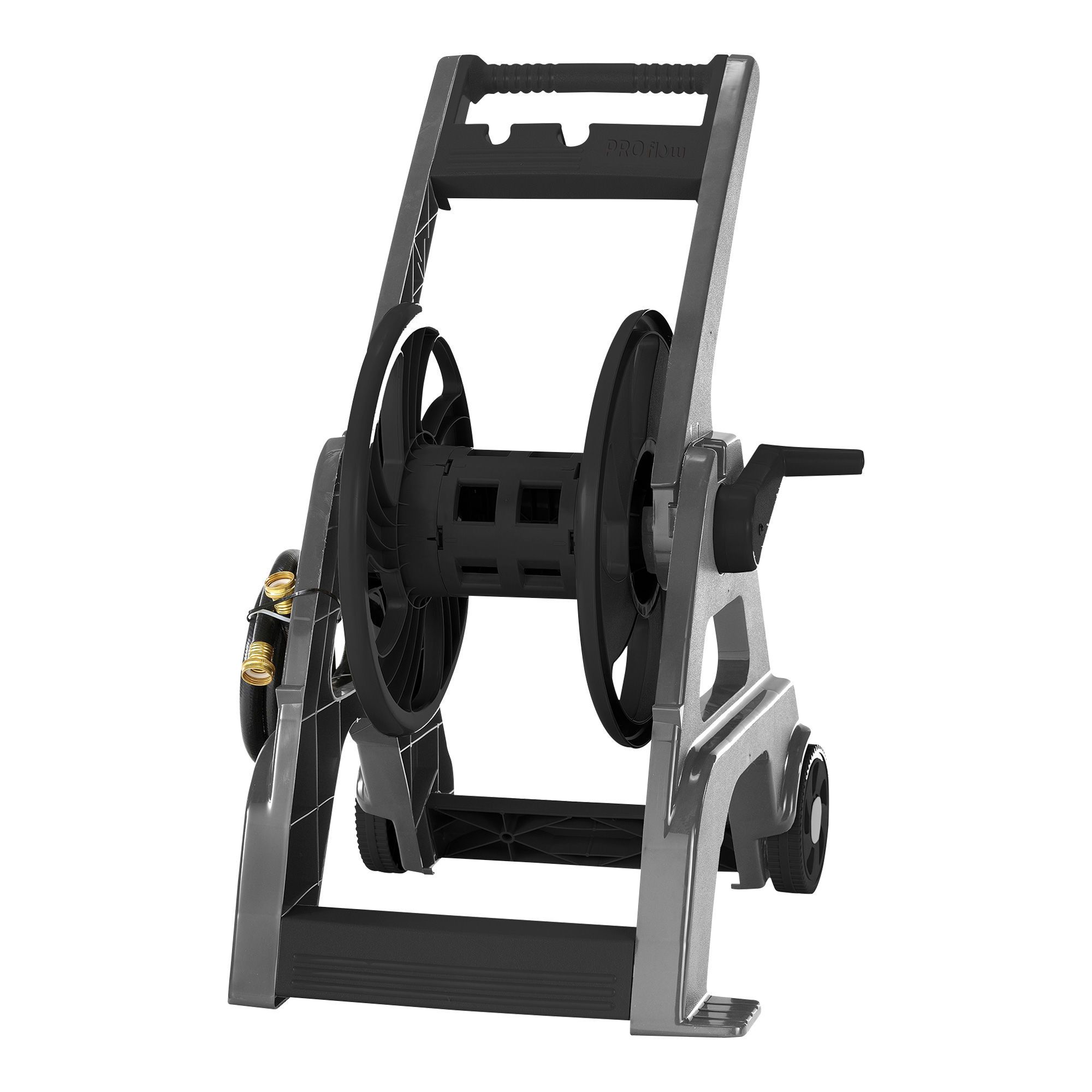 Roulez et déroulez rapidement votre tuyau à l'aide du chariot de dévidoir ProFlow. Ce dévidoir à grandes roues de 6" permet de maintenir enroulé un boyau d'arrosage de 175' x 5/8".