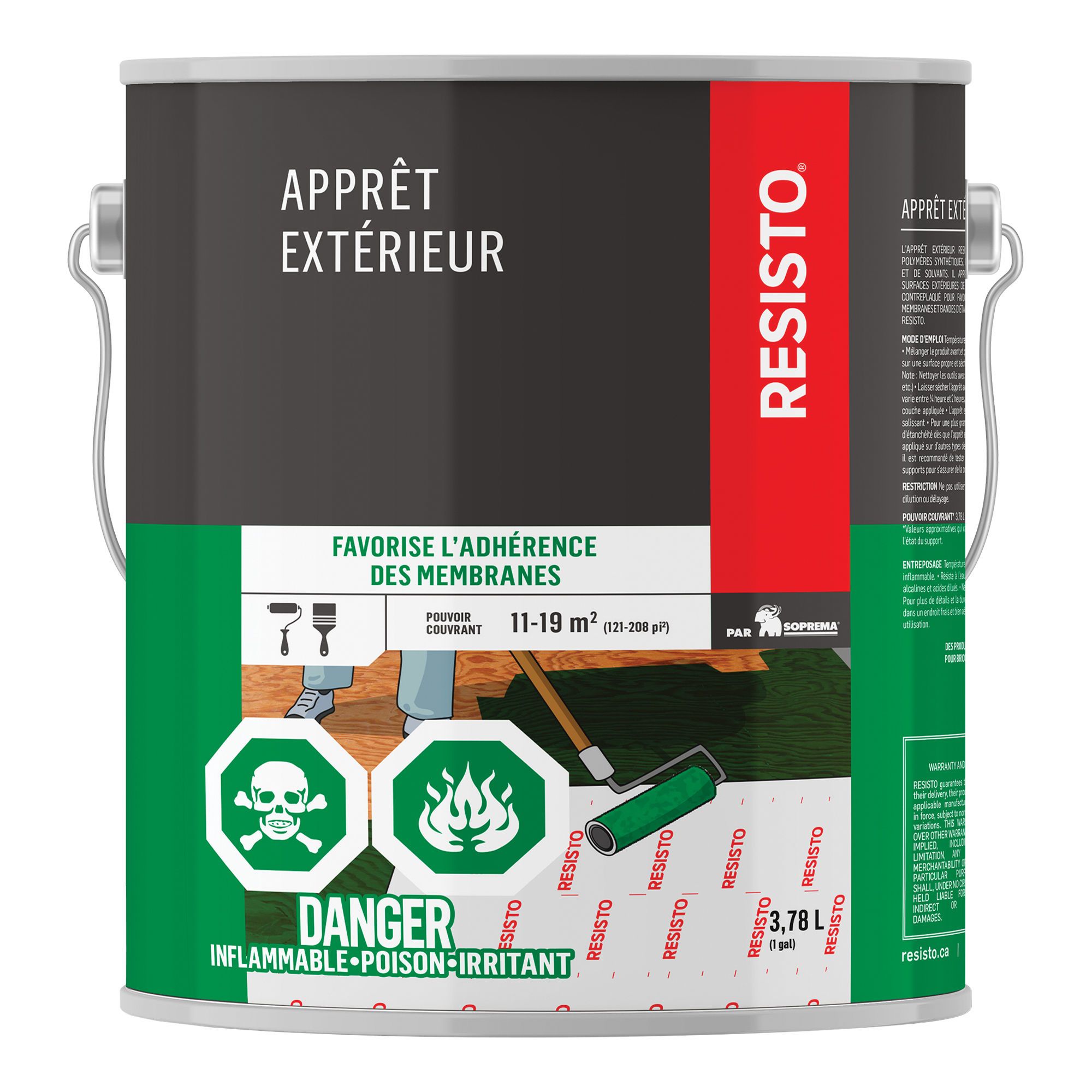 Favorisez l'adhérence des membranes et des bandes d'étanchéité RESISTO avec cet apprêt pour surfaces de béton, de métal, de bois et de contreplaqué.