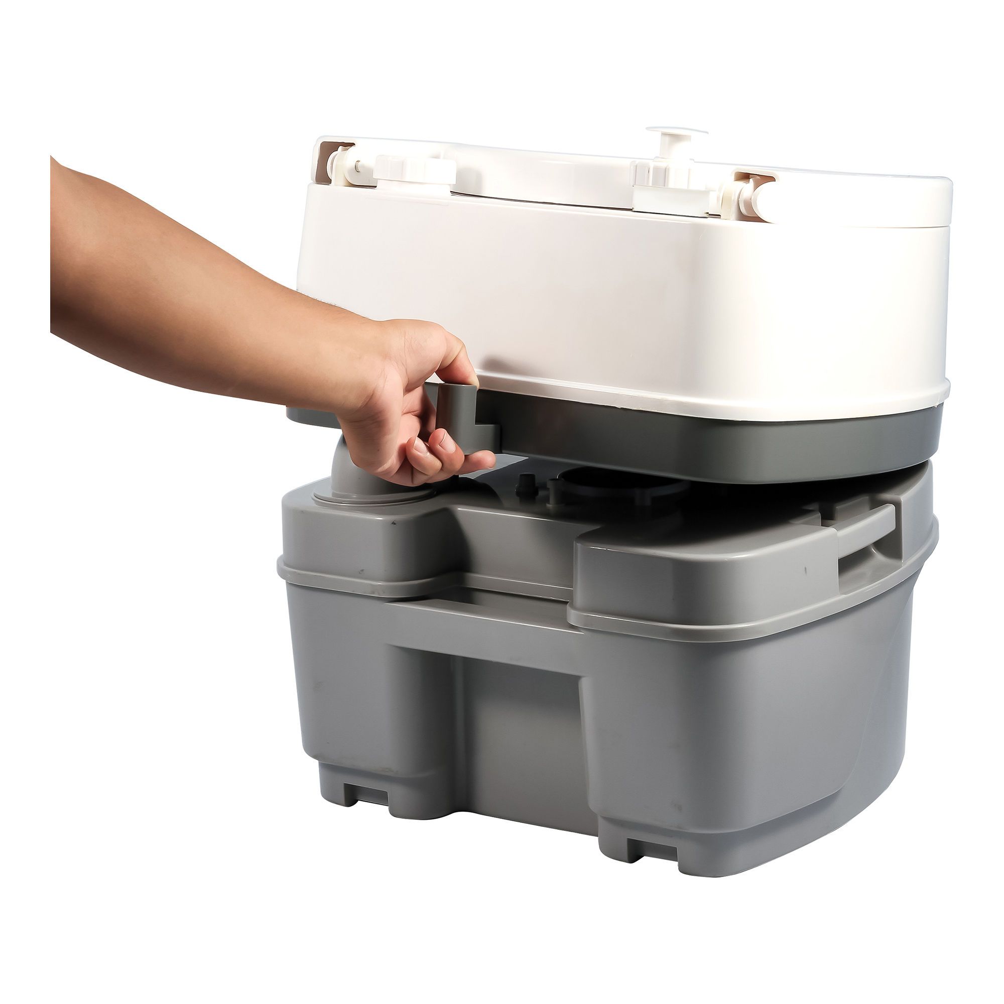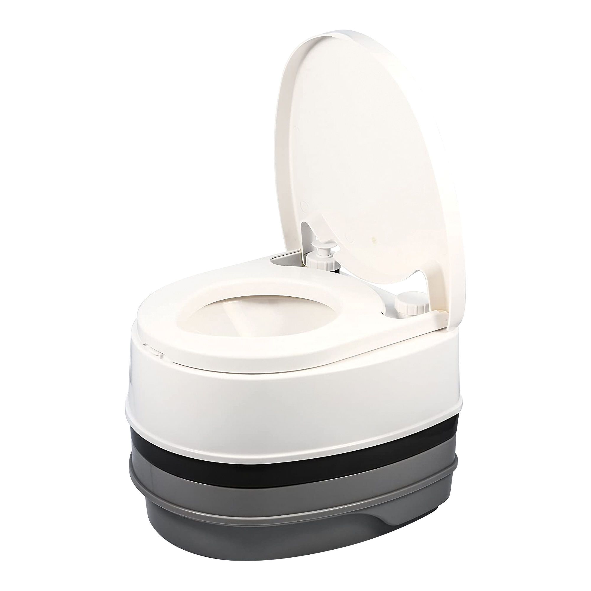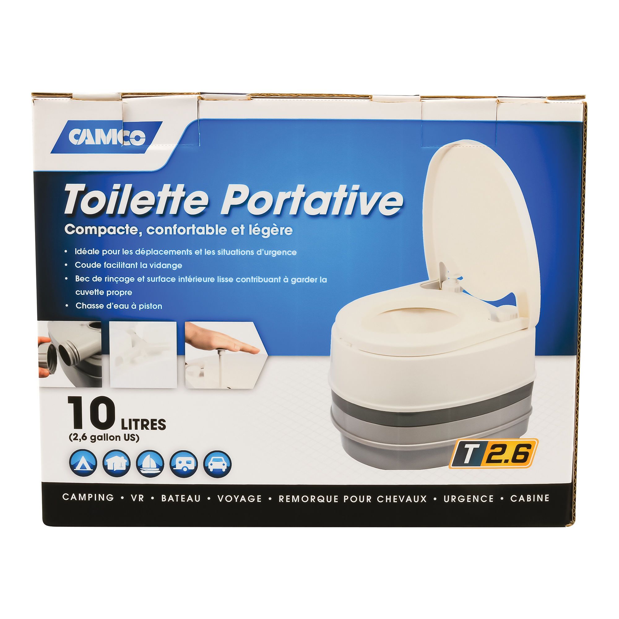 • Les toilettes de camping CAMCO sont dotées d'un couvercle qui peut être fermé pour un transport plus facile ou complètement retiré pour le nettoyage