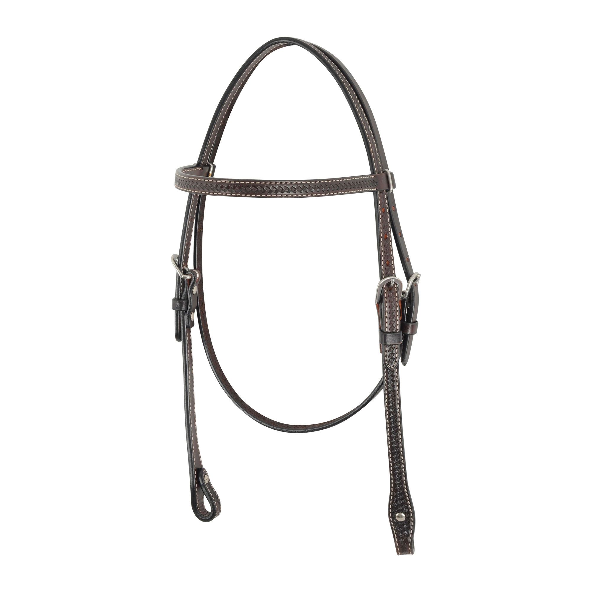 Votre cheval aura fière allure avec cette bride à frontal droit fait de cuir double.