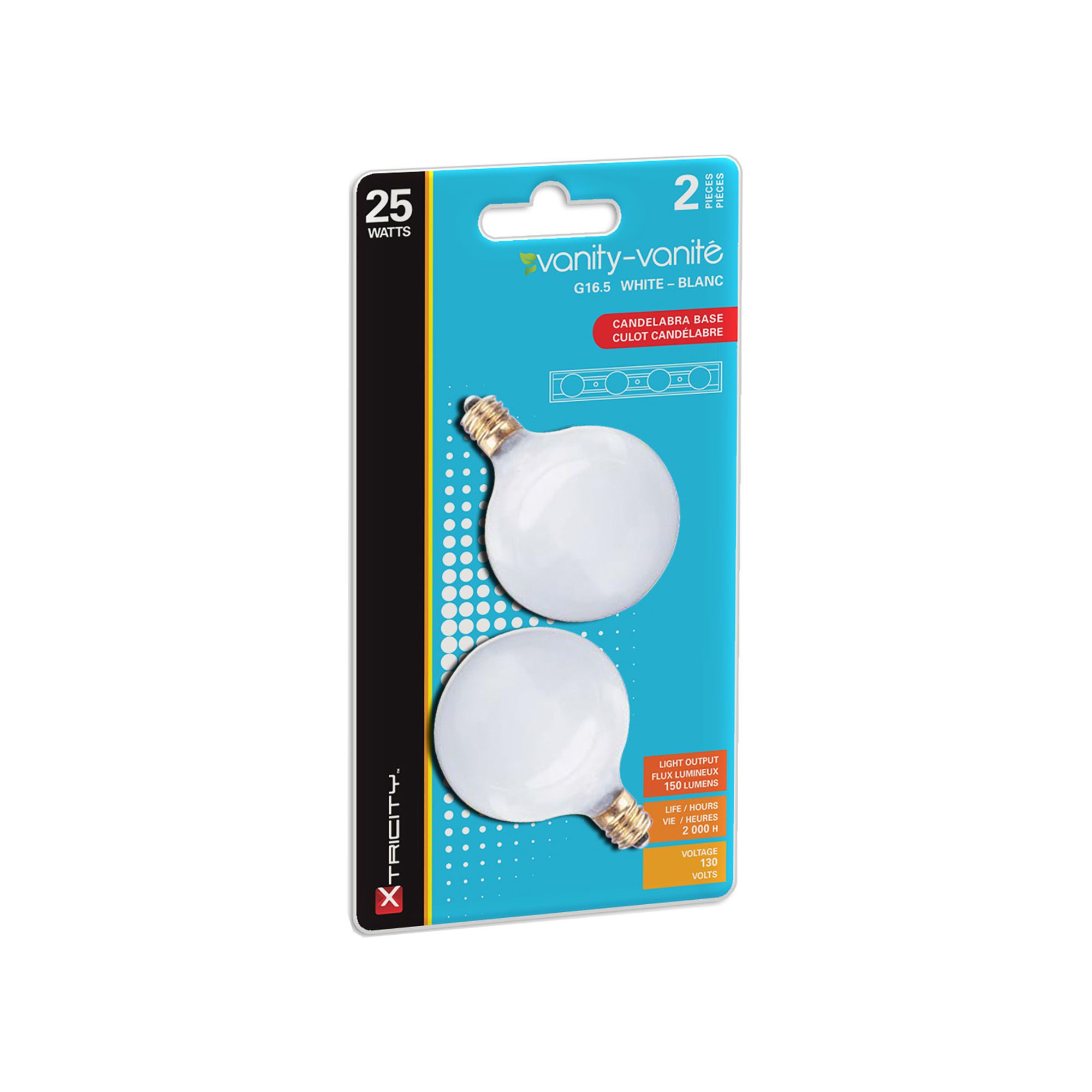 Ampoule vanité, G16,5, incandescente, blanc doux, 2/pqt