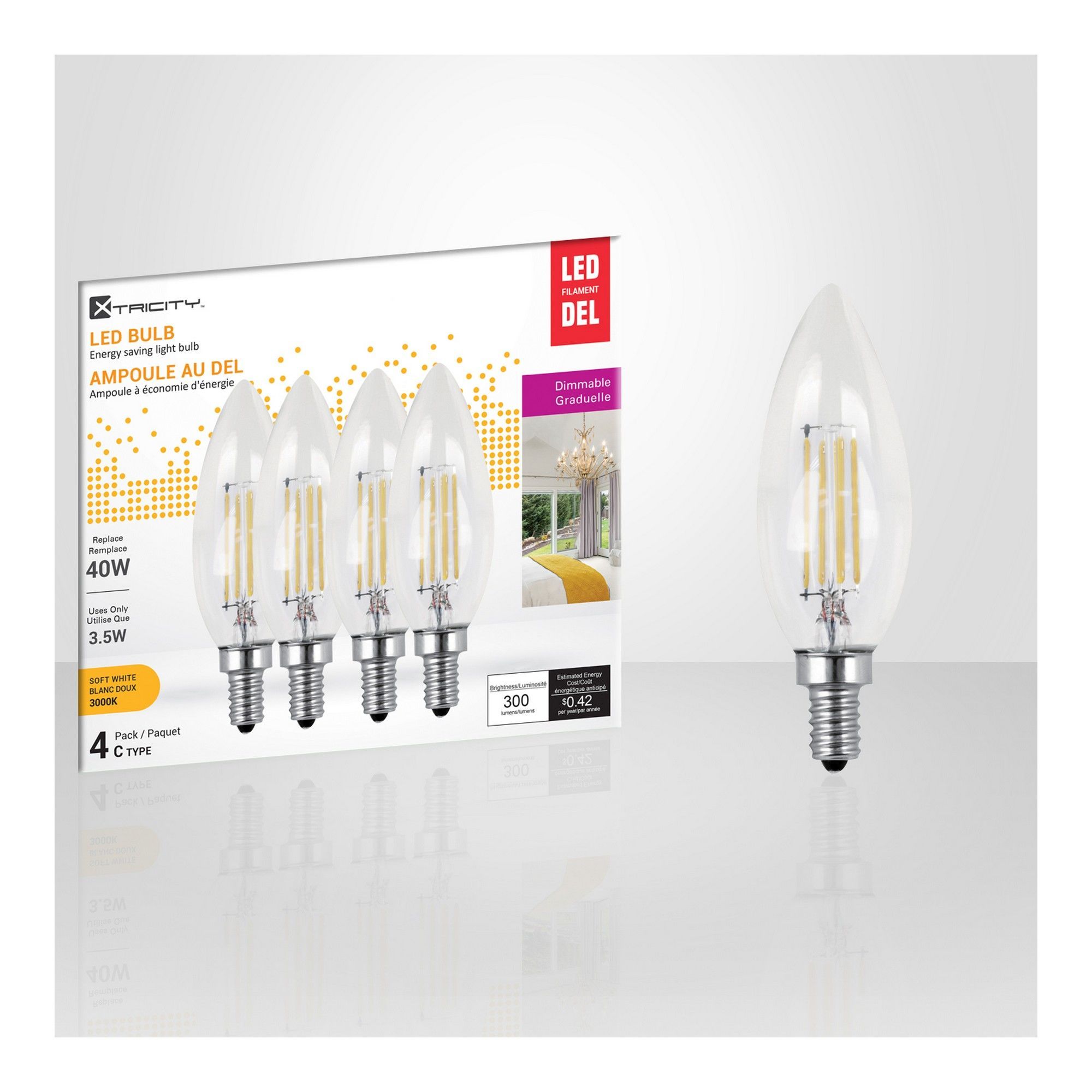 Ampoule Vintage, blanc doux, E12, 3,5 W, 4/pqt