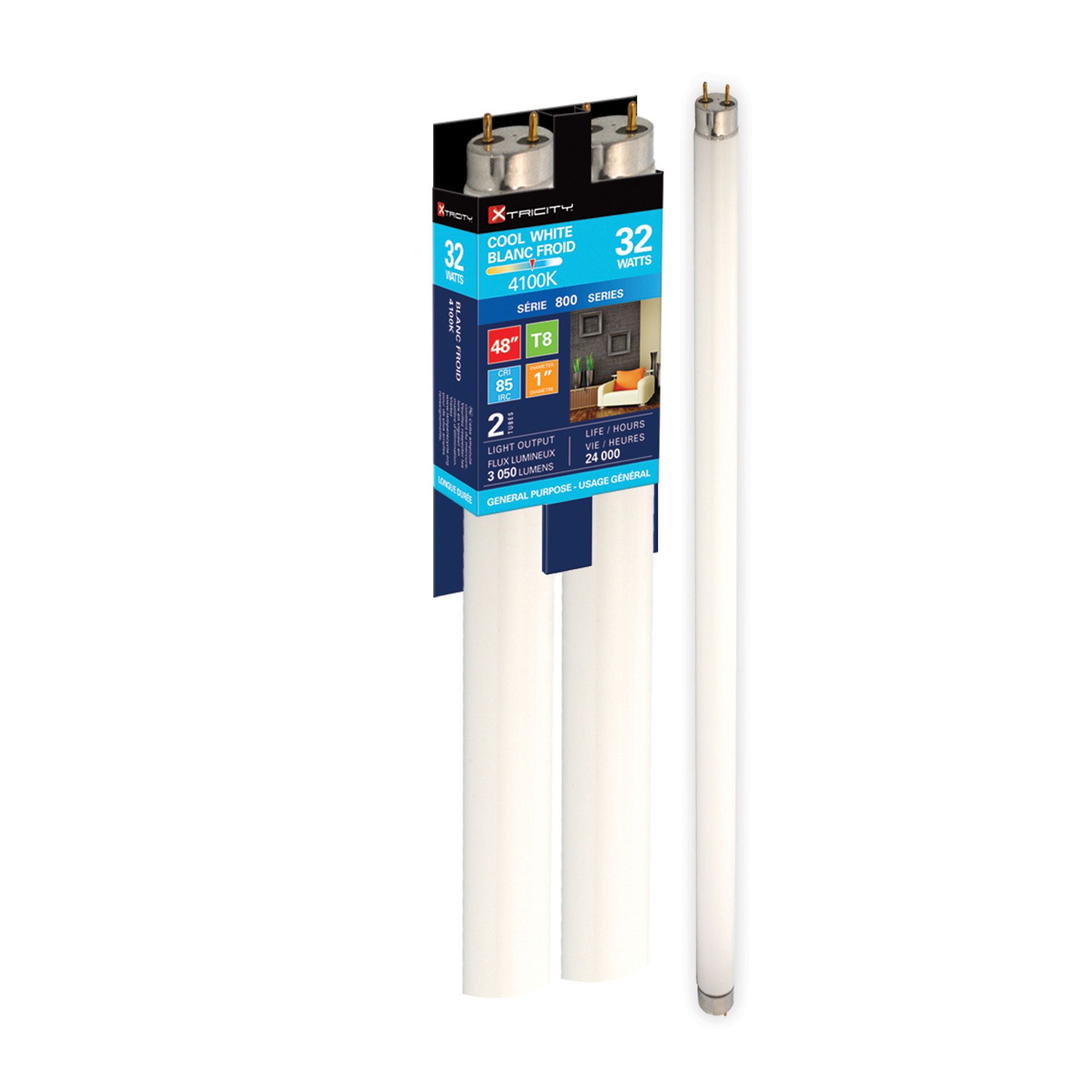 Tube fluorescent, triphosphore, 48", T8, 32 W, 2/pqt