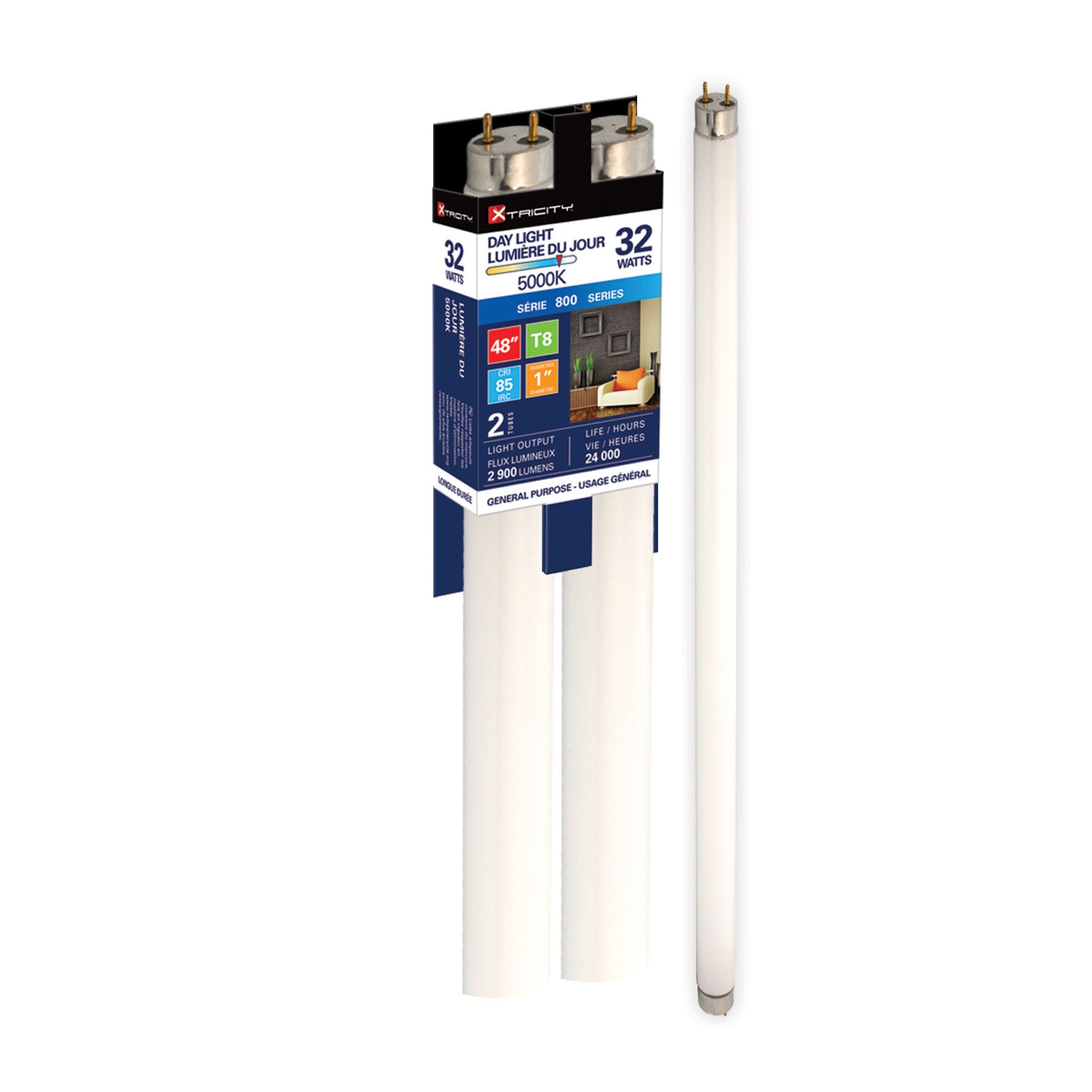 Tube fluorescent, triphosphore, 48", T8, 32 W, 2/pqt